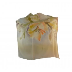 Ten szal to rękodzieło, nie masowa produkcja. Każdy egzemplarz powstaje w limitowanych seriach, a motyw rysowany jest ręcznie na naturalnym jedwabiu. Wzór łączy lekkość akwareli z precyzją rysunku, tworząc subtelną grę światła i cieni. Paleta blade żółte, piwonii, różu, wrzosu i beżu daje efekt neutralny, a jedwabny połysk podkreśla miękkość tkaniny. To nie tylko dodatek – to małe dzieło sztuki, które podkreśla indywidualny styl.
