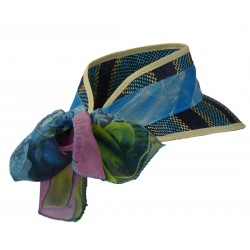 Elegancki kapelusz granatowo niebieski z ozdobną kokardą zielono różowo niebieską , która dodaje mu subtelnego uroku. Odcienie niebieskiego świetnie komponuje się z różnymi stylizacjami, a regulowany rozmiar sprawia, że pasuje na każdą głowę. To must-have na słoneczne dni, łączący funkcjonalność z modnym wyglądem.